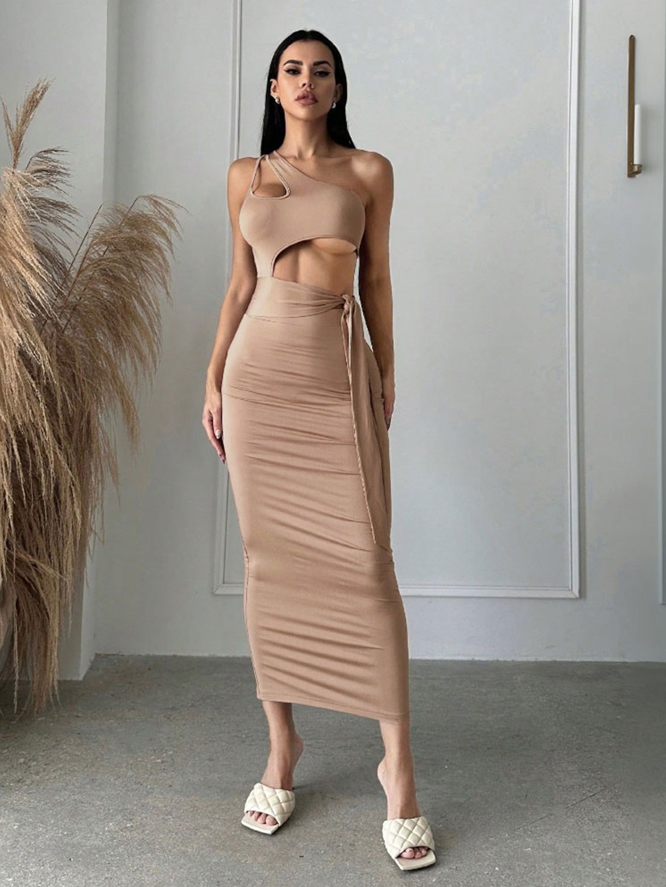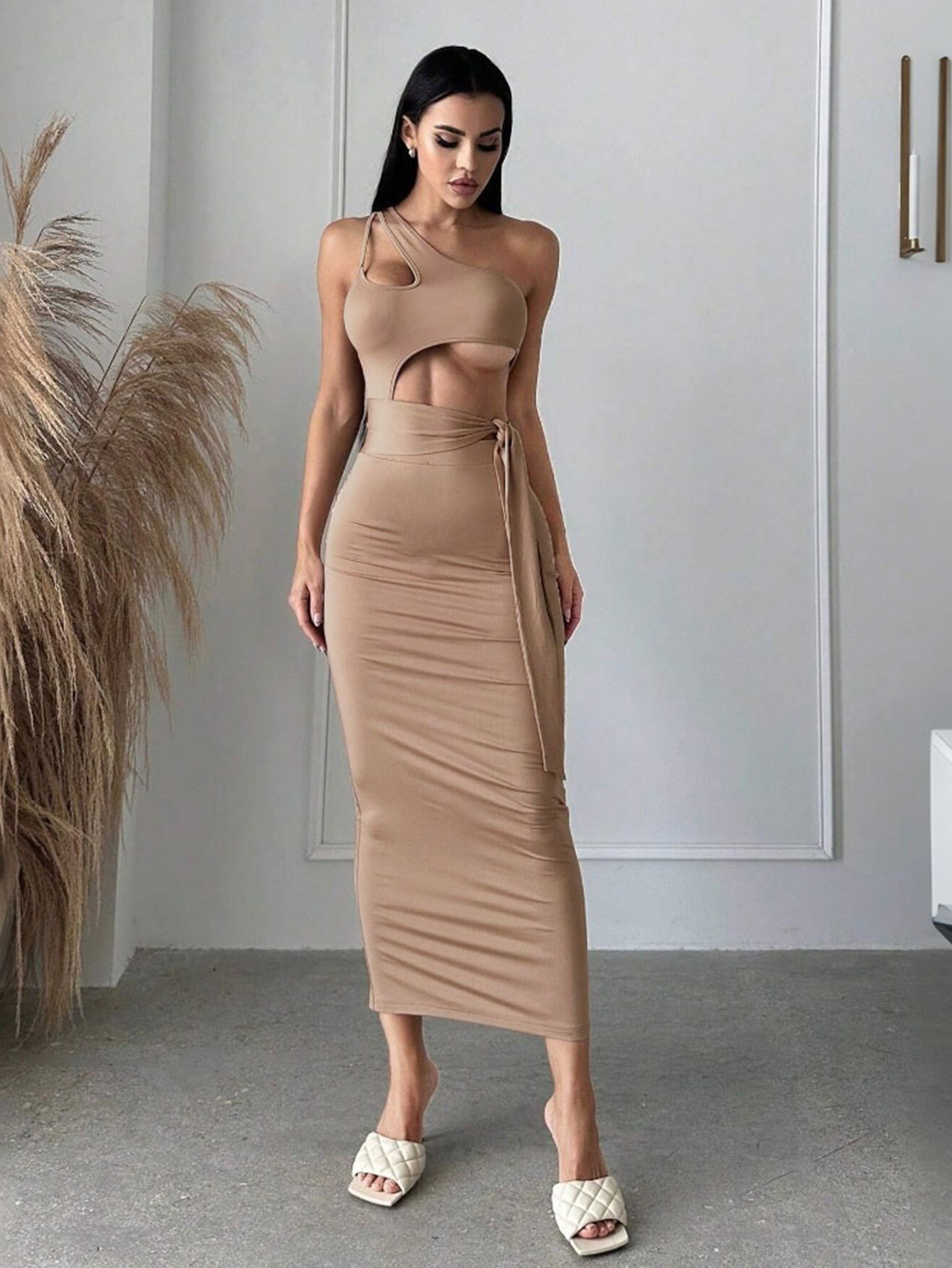 WezelBezel Asymmetric Long Slit Dress