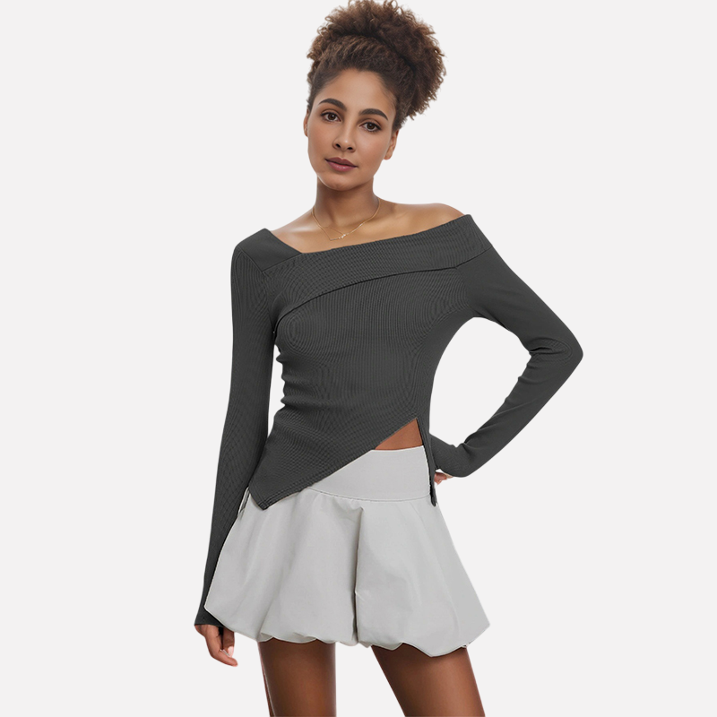 Neckline: Slanted neckline