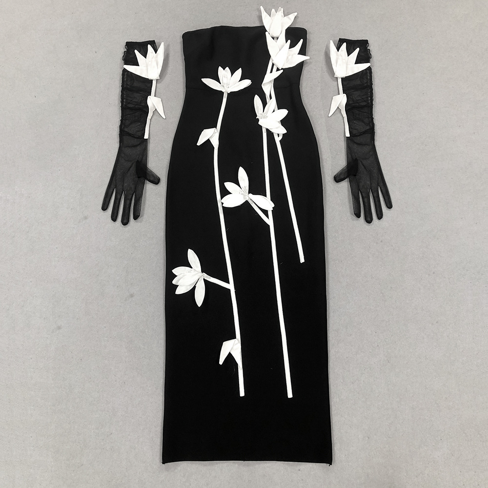 WezelBezel Strapless 3D Floral Dress
